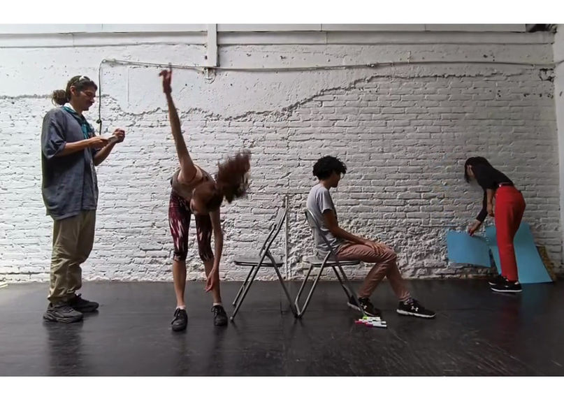 Para esta sesión, Aimée inició con una activación performática de escucha, en la que, con los ojos vendados, jugamos a ser perros y gatos: ladramos, maullamos, perseguimos y nos persiguieron. Al vendarnos los ojos, el espacio se convirtió en un lugar desconocido, lo que nos permitió agudizar nuestros sentidos.